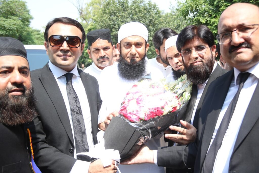 Malik Asif Ahmed Nasuana (President), Abdul Rehman Ranjha (Vice President), and Farrukh Ilyas Cheema (Secretary) of the Lahore High Court Bar Association warmly welcomed the eminent religious scholar Maulana Tariq Jameel and presented him with a bouquet.